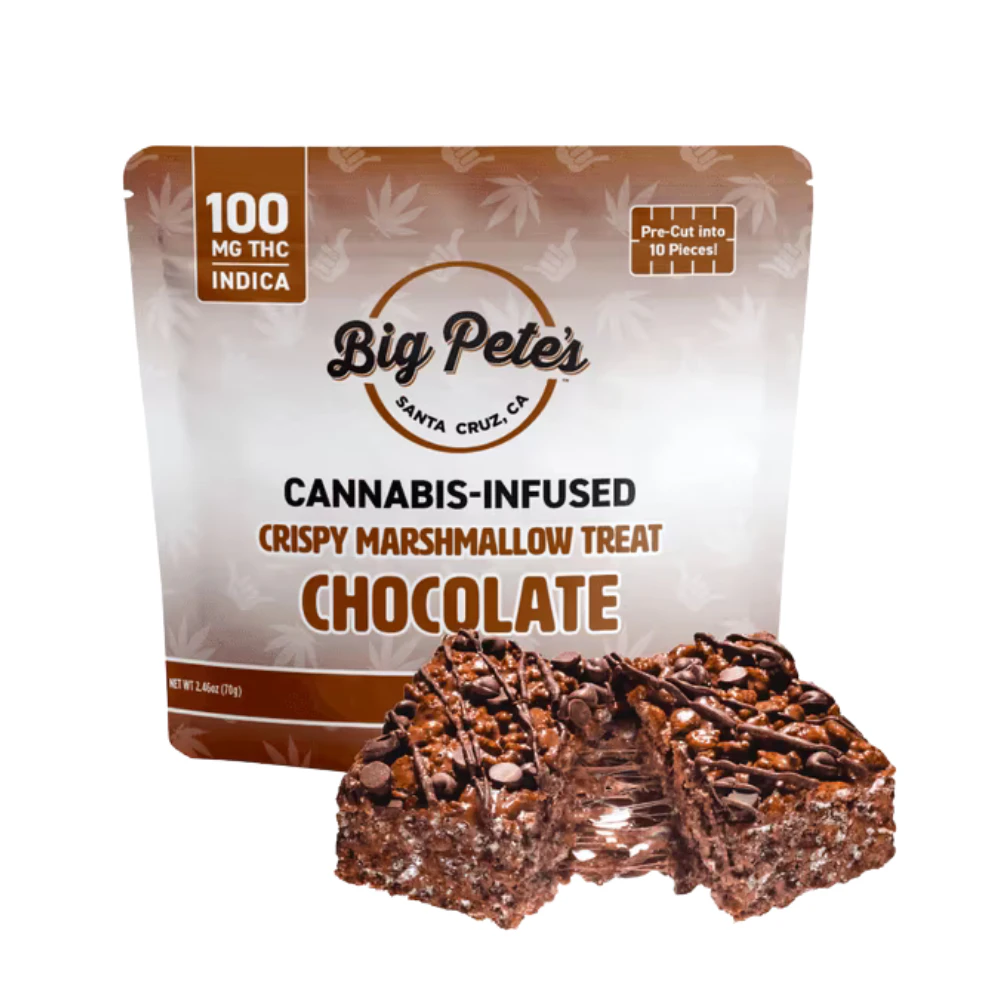 For all the chocolate enthusiasts out there, we present the irresistible Chocolate Crispy Marshmallow Treat by Big Pete's. Immerse yourself in a world of rich, velvety flavors and delectable textures. This signature Cannabutter-infused rice cereal and marshmallows are taken to new heights with a drizzle of luscious chocolate and an abundance of chocolate chips. With every bite, you'll experience the perfect harmony of crispy, gooey, and chocolatey goodness. Elevate your snacking experience with this decadent creation.