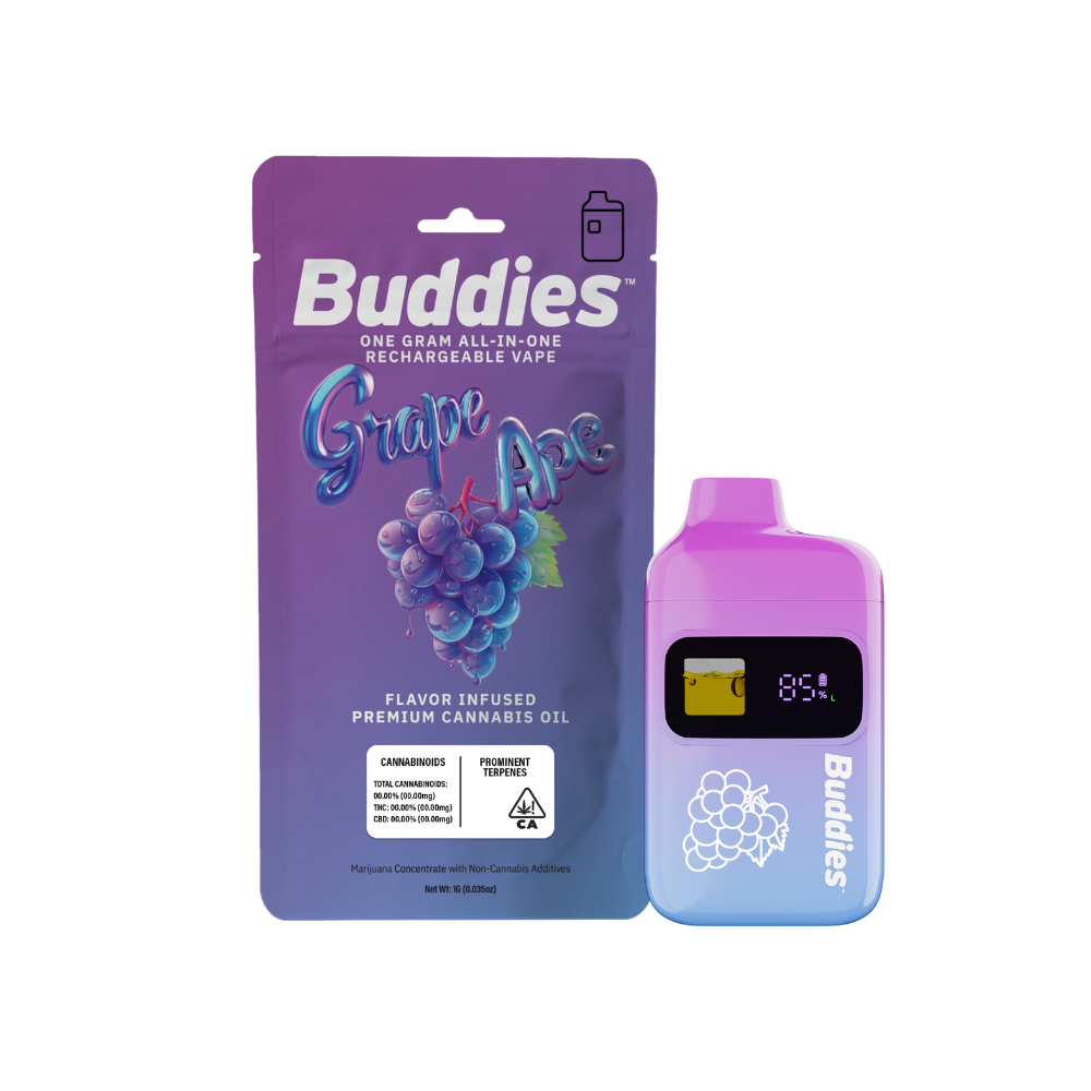 Experience the perfect blend of convenience and quality with the Buddies 1g Ready-To-Use vape. Ready to go right out of the box, this discreet device pairs reliable hardware with premium cannabis oil and a refreshing variety of natural plant-based terpenes for a smooth, flavor-packed experience. With a full gram of oil and a rechargeable battery to ensure you never miss a drop, itβs the ultimate low-maintenance companion for anyone who wants high-quality puffs without the need for extra gear.