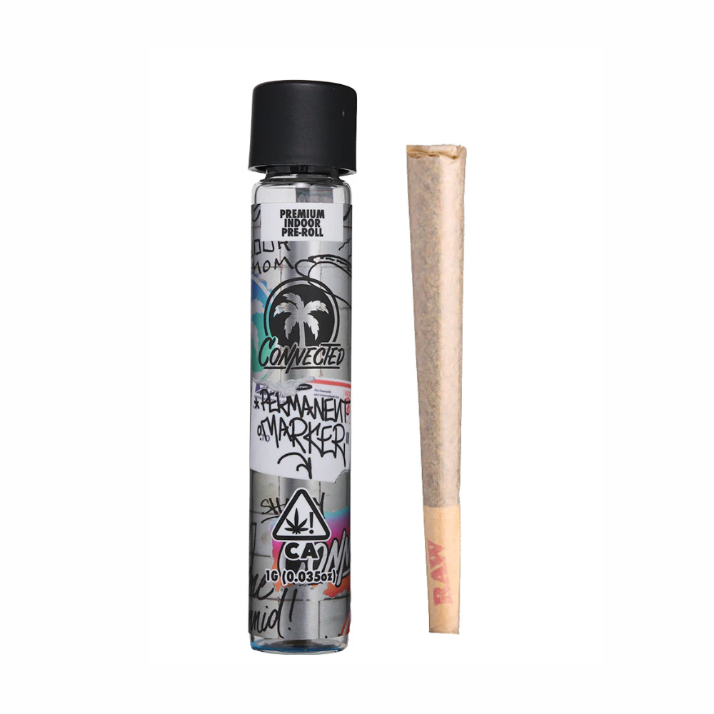 Knock out on this indoor 1g pre-roll from Connected featuring the strain Permanent Marker. After a whiff of this flower you’ll know exactly why this strain has earned this moniker. A rich candy aroma soaked in a gas will assault your nasal cavities the moment you lift the lid.