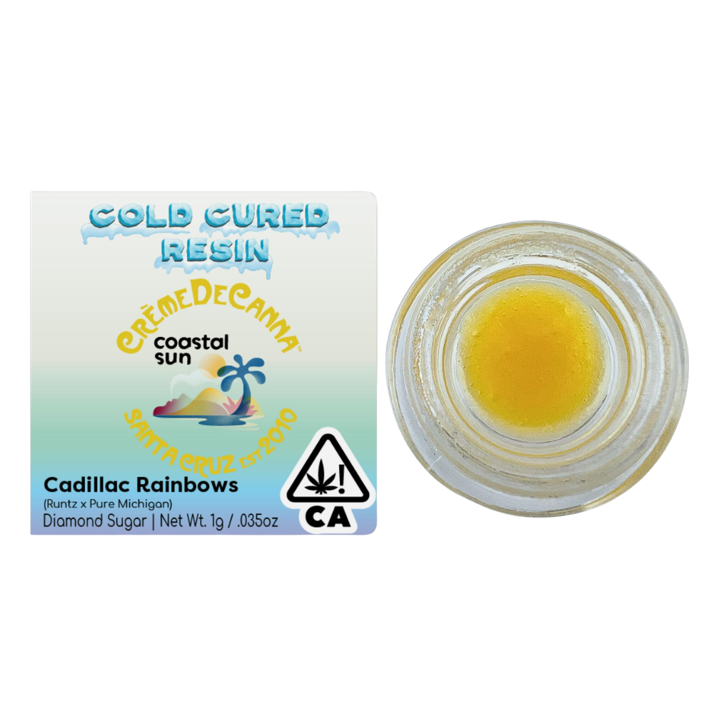 Coastal Sun Cadillac Rainbows is a dazzling hybrid born from the cross of Runtz and Pure Michigan, delivering a rich, multifaceted experience. Its aroma bursts with bright citrus and tropical fruit, layered over a smooth, creamy earthiness that lingers like a sunlit breeze. This uplifting extract fuels creativity and euphoria, washing over the mind with clarity while leaving the body in a relaxed yet energized state—perfect for artistic pursuits or a blissful day outdoors.