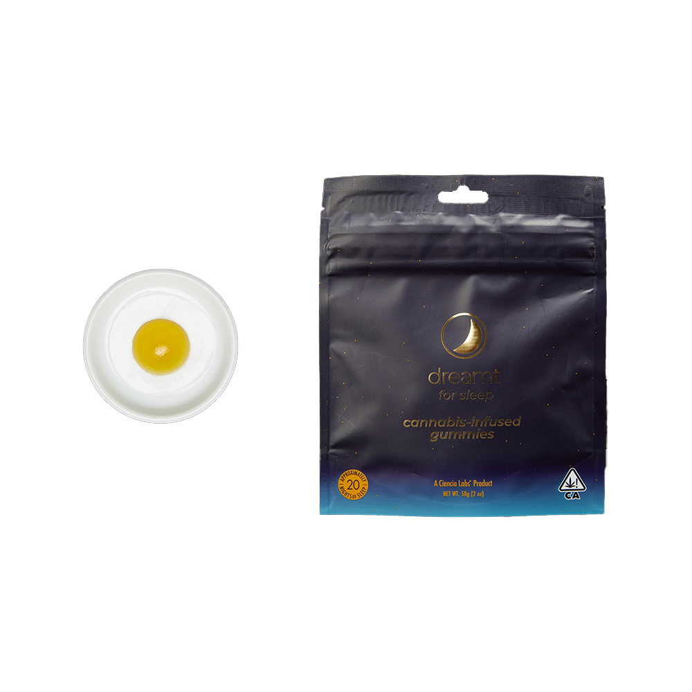 dreamt Gummies offer deep, restorative sleep in a delicious, sugar free, gluten free, edible package. 5mg of THC and 2mg of CBD per gummy, 20 gummies per pack. Ingredients: Maltitol, Xylitol, Water, Vegetable Glycerine, Gelatin, Citric Acid, L-Theanine, GABA, Valerian Root Extract, Agar, Natural Flavors, THC and CBD. dreamt is California's top ranked cannabis sleep-aid using Melatonin, GABA, Valerian Root, THC, and CBD to promote healthy, restful, and long lasting sleep.