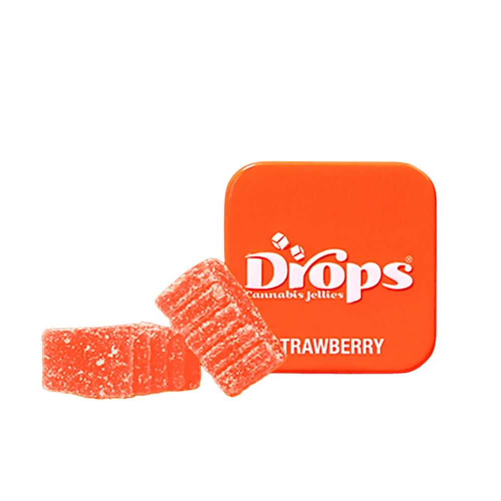 These 1:4 ratio CBD:THC edibles by Drops are strawberry-flavored and made with Live Rosin from the strain Sour Strawberry. Each 125mg pack contains two 50mg THC and 12.5 mg CBD pieces, with each piece scored into five sections for accurate dosing of 10mg THC and 2.5 mg CBD per serving. The possible effects of this strain include an uplifting, cerebral experience, with a calming finish. Made with Live Rosin & Hemp-Derived CBD.