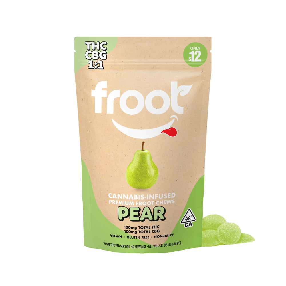 200mg 1:1 THC:CBG Pear Gummies (10mg THC, 10mg CBG - 10 pack) - Froot