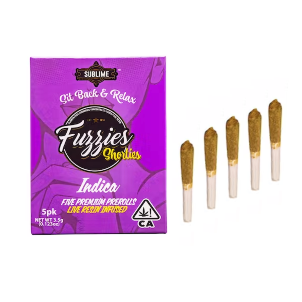 This is a pack of 5 Papaya Live Resin infused shortie prerolls, 0.7g each, 3.5g total from Sublime. Shorties have a powerful high. Their flower has been infused with live resin distillate, rolled in cannabis concentrate, and generously coated in kief. These petite pre-rolls are small in size but deliver a big high, with 40%+ THC potency.