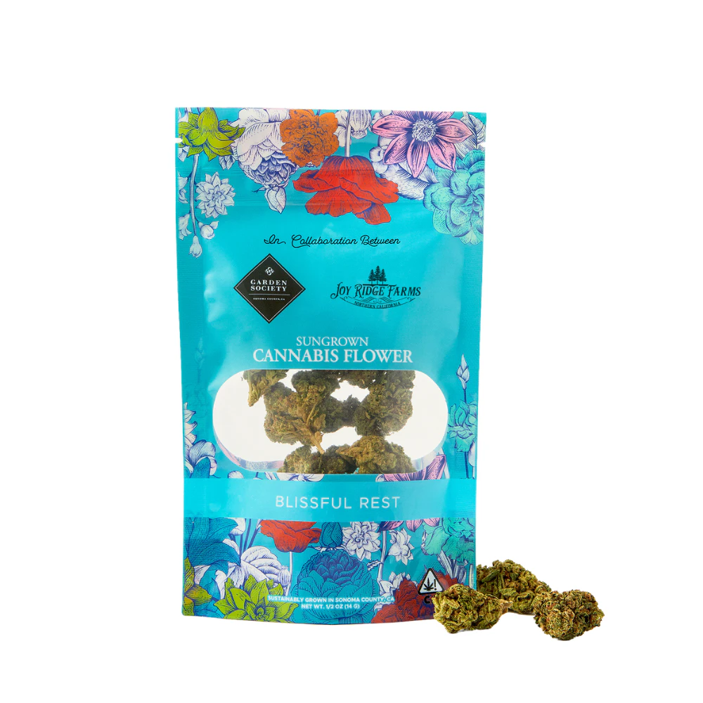 This bag contains 14 grams of sungrown nugs featuring the strain Modified Grapes from Garden Society.