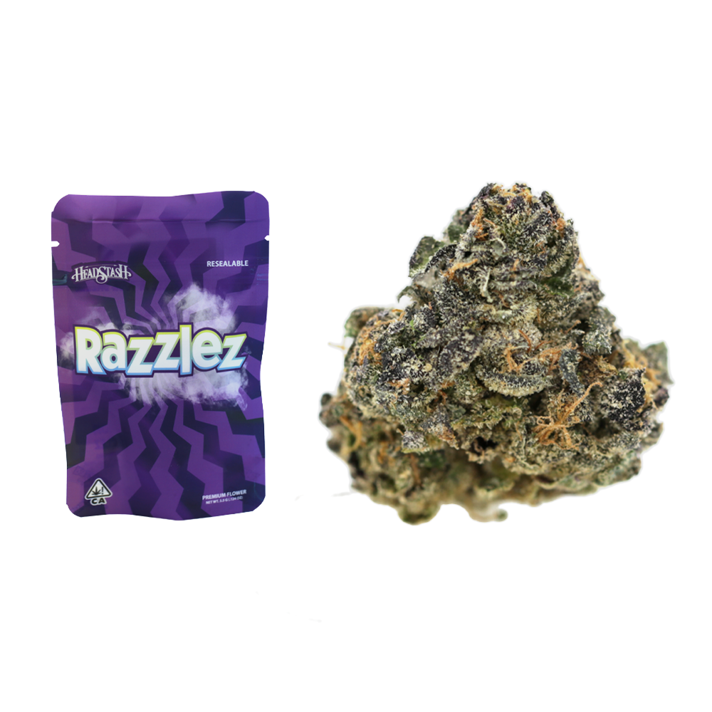 Dazzle your friends (and yourself!) with 3.5g Razzelz from headstash! Of unknown origins, Razzlez signature exotic is a high caliber, beautifully balanced hybrid with a sweet delectable flare and discernible vibrant color. This strains linage is being kept secret, but we do know theres some Sunset Sherbert in there somewhere, giving it a fruity, sweet flavor and mellow, relaxing high. Balancing quality with affordability, Headstash creates clean, simple, and potent products for the everyday cannabis consumer.