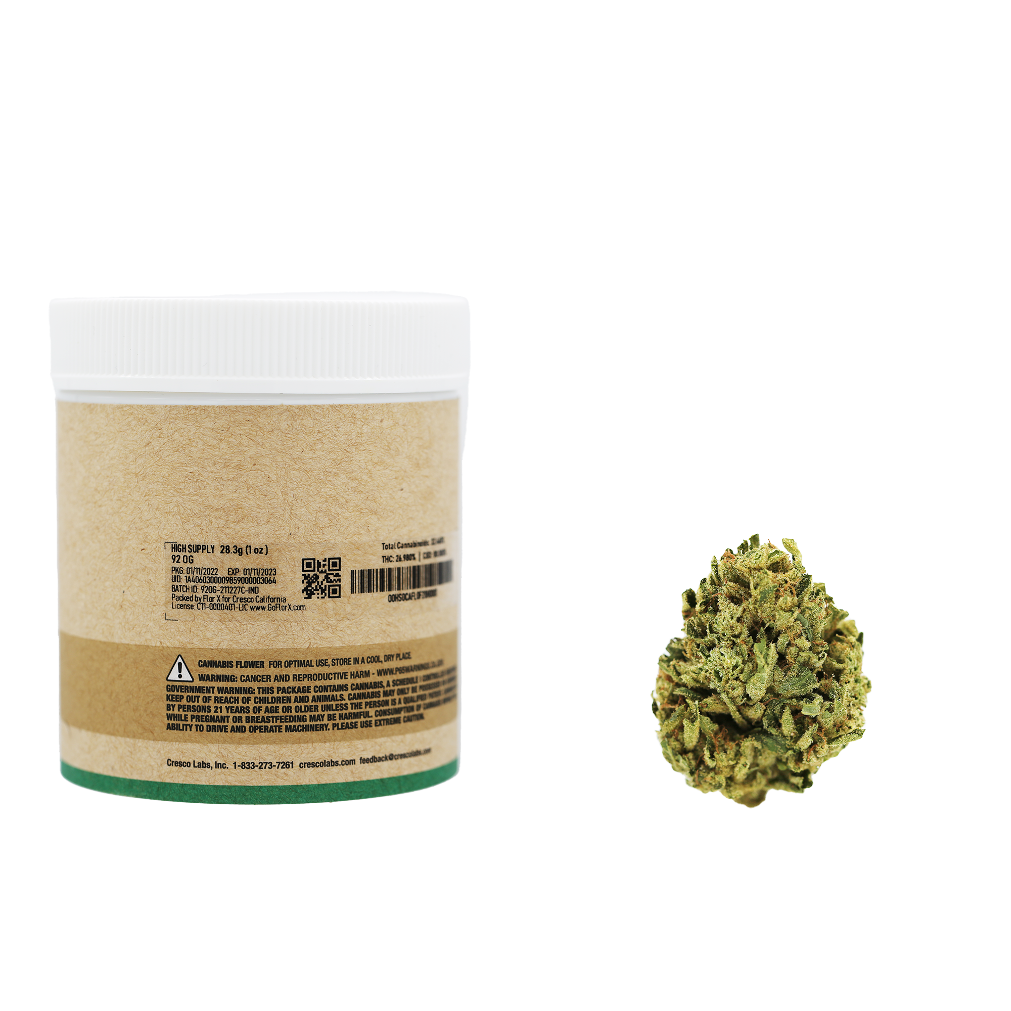 Experience a version of the real OG with 14g 92 OG from High Supply. A cultivar of OG Kush, 92 OG has a complex, unique flavor: an unforgettable mixture of warm spice, skunk, pine, and diesel. Beginning with a cerebral rush, many users report a feeling of psychedelia as colors brighten and the mood is altered into a happy, yet slightly focused mental state. The uplifting stimulation makes it a fantastic social strain, but the mild body buzz is enough to keep you grounded. Although heavy indulgence may cause anxiety, it will often lead to a blissful couch-lock and leave your thoughts soaring amongst the clouds. High Supply offers quality, lab-tested weed for those looking for more in life.