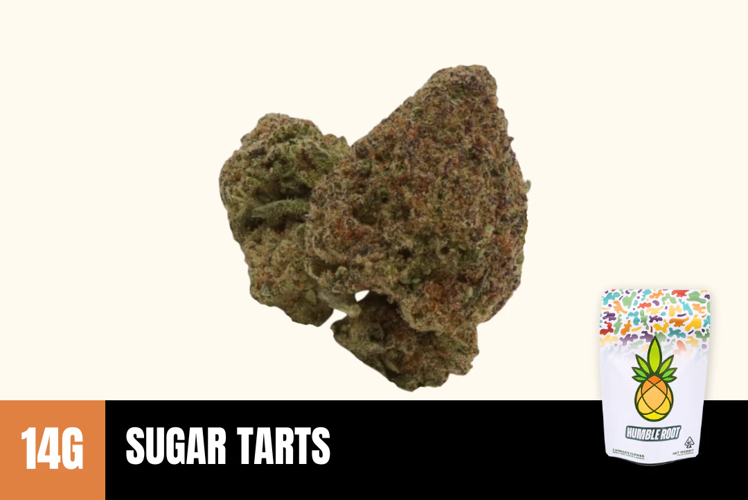 Get the afternoon vibes started with this 14g bag of greenhouse flower featuring the strain Sugar Tarts from Humble Root. A perfect choice for winding down your day over a delicious meal. Humble Root offers quality cannabis products to get you feeling just right under the influence of good vibes at a price tag you can smile about.