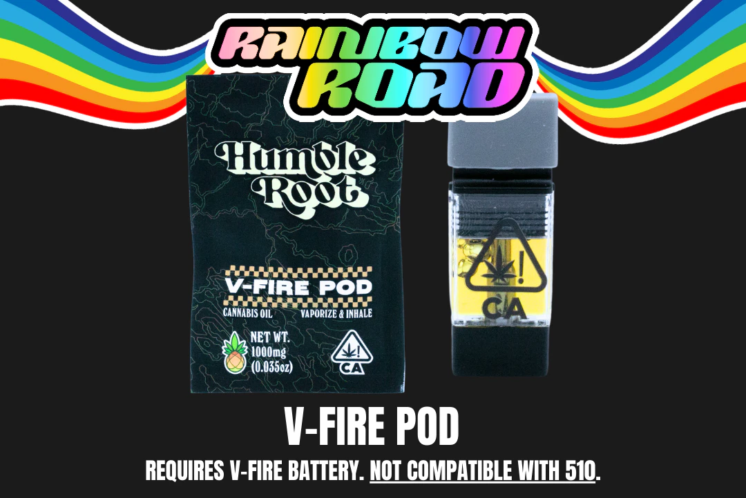 Ride the colors like Bob Ross with this 1g Rainbow Road vFire Pod featuring the strain Rainbow Belts, crafted for high potency portable fun and made with true cannabis terpenes. Humble Root offers quality cannabis products to get you feeling just right under the influence of good vibes at a price tag you can smile about. Compatible with vFire or PLUGPlay batteries only (not included).
