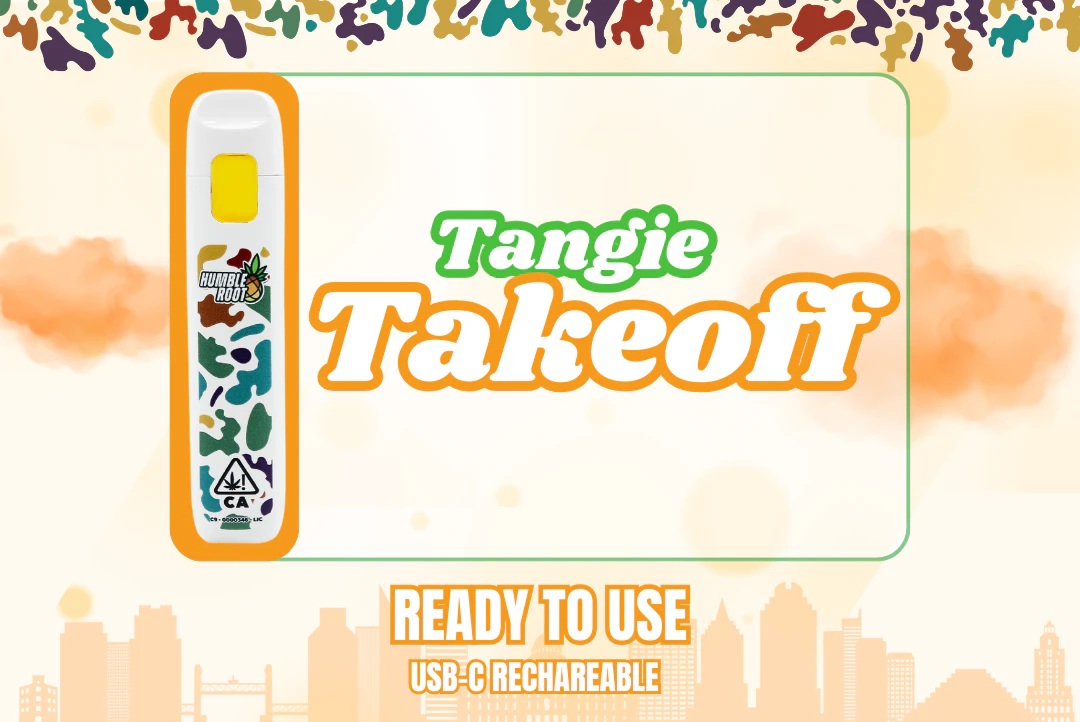 Enjoy those sunny days with this 1g All-In-One Vape featuring the strain Tangie Takeoff, crafted for high potency portable fun and made with true cannabis terpenes. Humble Root offers quality cannabis products to get you feeling just right under the influence of good vibes at a price tag you can smile about. This vape is ready to use out of the package for an instant head change on the go. Natural terpenes, high potency, ribbed for pleasure, and USB-C rechargeable (cord not included).