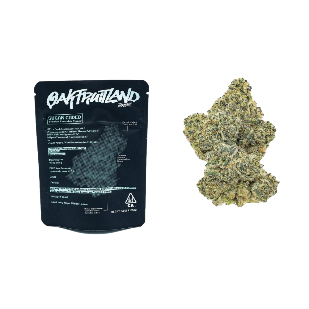 This mylar bar contains 3.5 grams of the strain Sugar Coded that is indoor grown to perfection. Oakfruitland’s premium flower is cultivated in a top-of-the-line indoor facility to ensure the best flavor and potency.