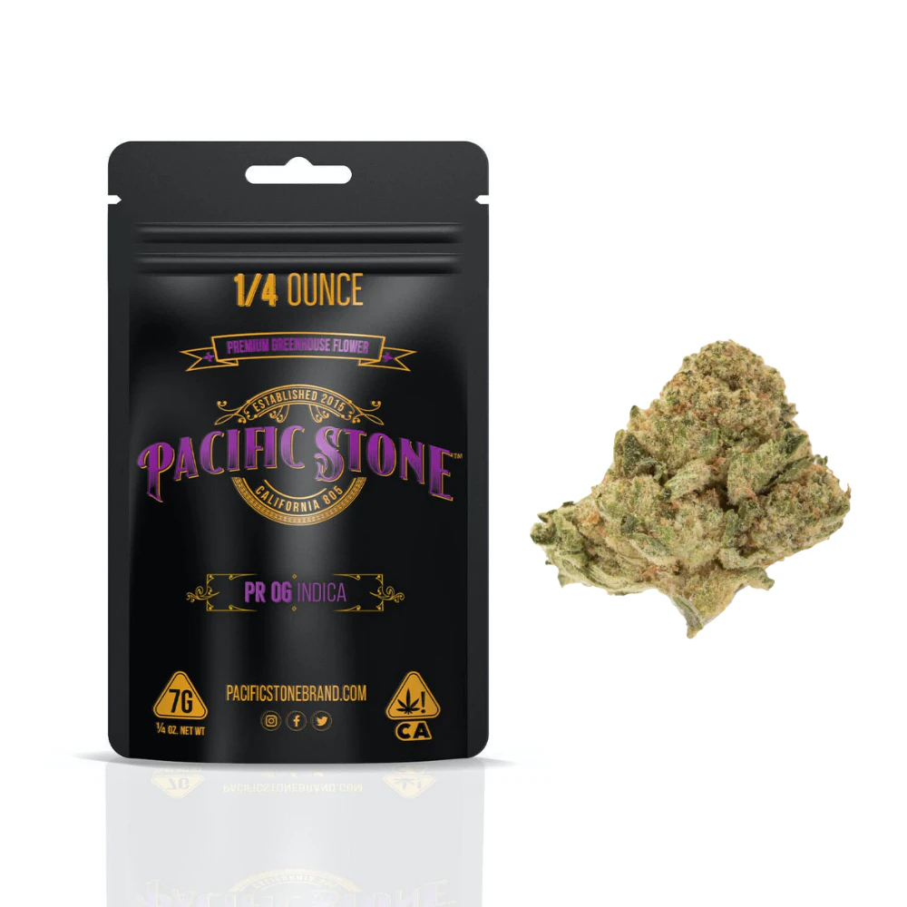 A popular phenotype of OG Kush, this 7g Private Reserve OG is a potent indica hybrid that helps relieve the symptoms of chronic pain, stress and appetite loss. The buds are a deep forest green and are coated with bright orange pistils and a moderate array of trichomes. Expect a pungent skunky and spicy aroma with tantalizing traces of citrus and sweetness. The high is heavy and sedating on both the body and mind and is often accompanied by a serious case of the munchies. Many users also report a Cookies-like effect with deep thoughts and self reflection coming on strong with an extended smoke session. California's best selling flower, Pacific Stone offers single source, family owned and operated, greenhouse cannabis that's clean, consistent, and affordable.