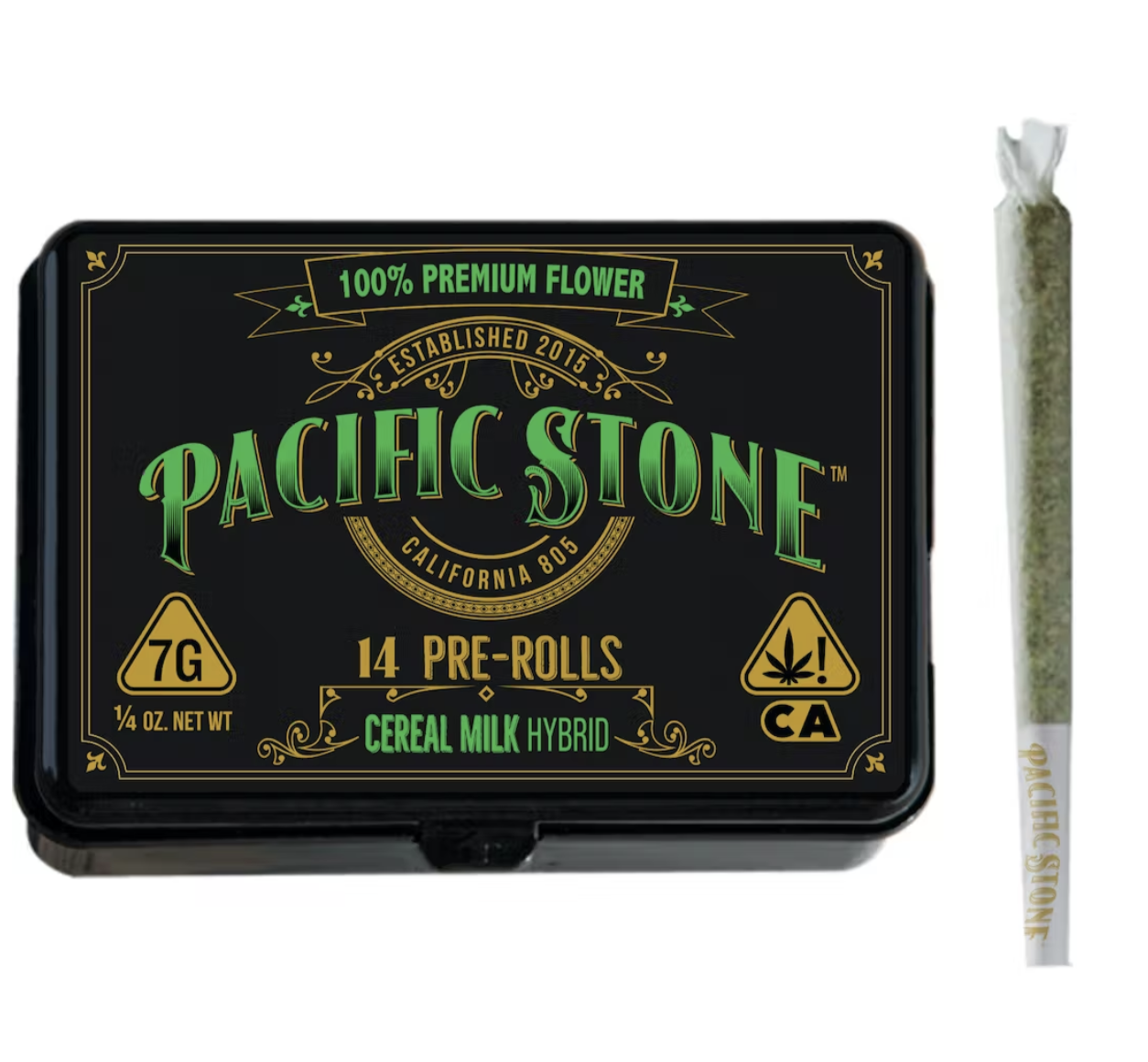 Stock your stockings this season with the 7-gram pre-roll pack of Cereal Milk from Pacific Stone. Pacific Stone Premium Pre-rolls are carefully packed with their premium 100% greenhouse flower, with no shake or trimming, ensuring a consistent smoking experience with each pre-roll. California's best-selling flower, Pacific Stone offers single-source, family-owned, and operated, greenhouse cannabis that's clean, consistent, and affordable. This package contains 14 prerolls (.5g each) per pack = 7g.