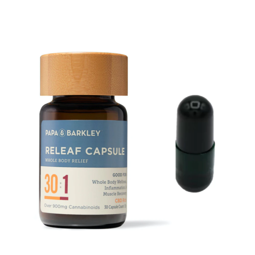 With the calming, pain-relieving effects of CBD at the forefront, Papa & Barkley's CBD Rich capsules help alleviate every day stress, anxiety, and pain. Their capsules contain Papa & Barkley’s triple-tested whole-plant oil into a fixed dose. Entirely vegan and gluten-free, Releaf Capsules reduce inflammation and enhance your mood. Ingredients: MCT Oil, Cannabis. 30mg cannabinoids per capsule, 30 capsules per pack.