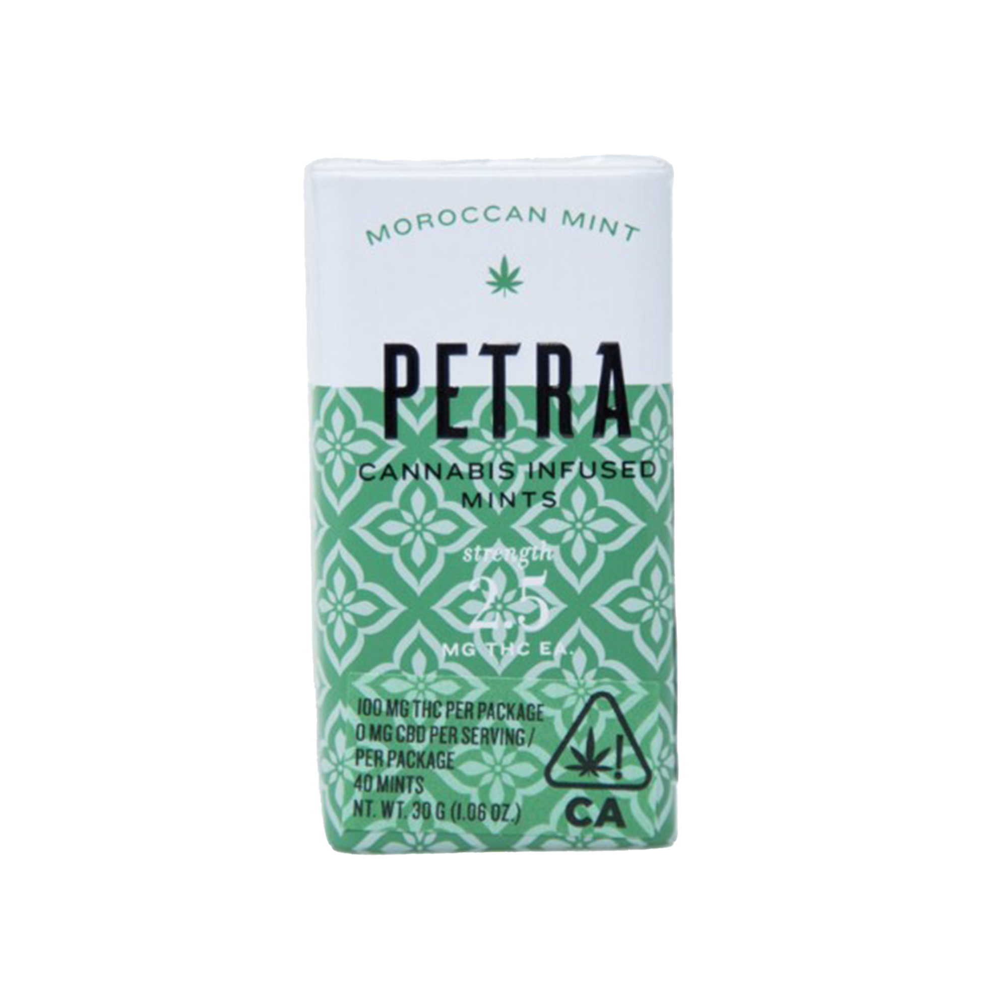 Combining green tea matcha and peppermint extract, 100mg THC Kiva Petra Mints - Moroccan Mint are sugar free and soothe your mouth with a hint of peppermint and light notes of Tahitian vanilla. Petra by Kiva Confections offers portable, precisely dosed mints that are ideal for microdosing throughout your day. 2.5mg THC per mint, 40 mints per tin = 100mg THC. With the goal to create an edible that redefined what a cannabis confection ought to be, Kiva Confections crafts their products from premium ingredients and skillfully combines them with California cannabis.