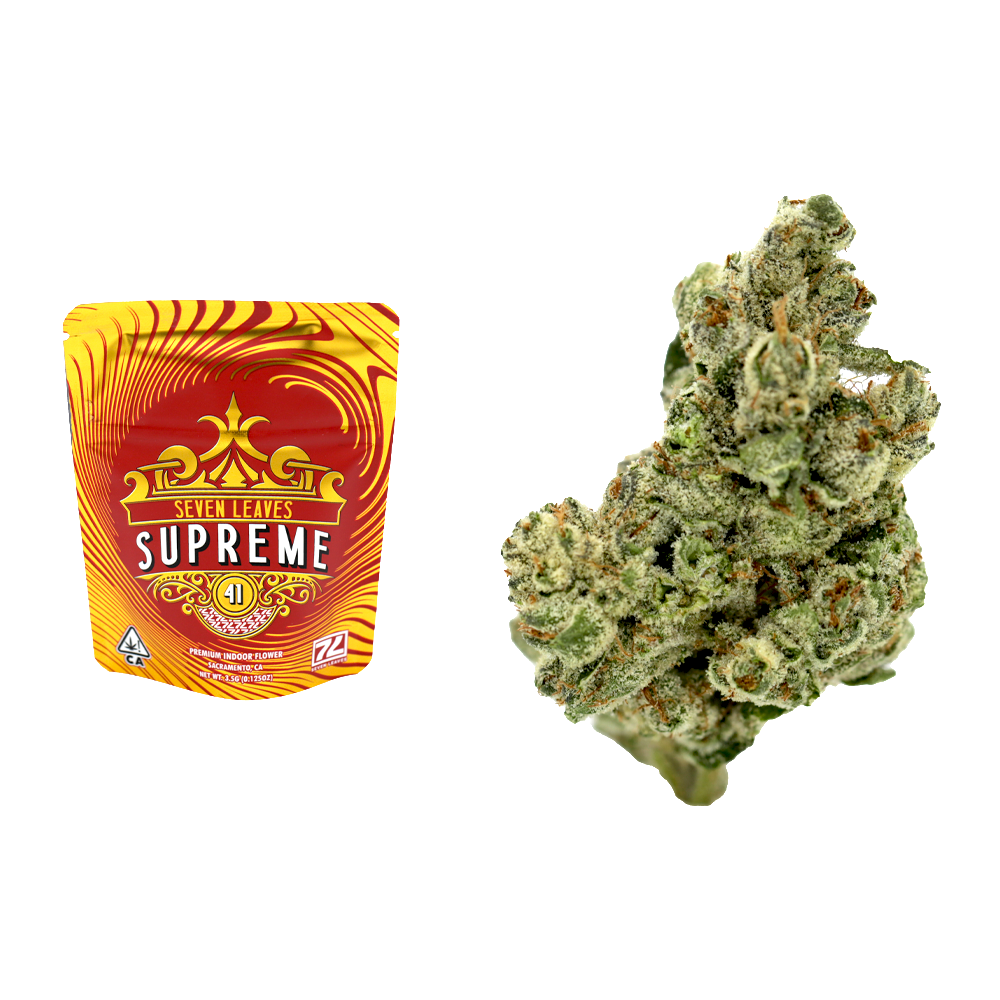 There’s a reason for the name of this 3.5g Supreme 41! A potent cross between Larry OG and Gelato 41, Supreme 41 offers supreme flavors of funky fuel, gas, earth, and creamy berries. Though technically indica leaning in effects, the powerful, soaring relaxation still leaves you able to focus, making it a great choice for those looking for a strong daytime treat to relieve pain, stress, and muscle spasms without falling asleep. “Quality, quantity, consistency” -- that's what you can expect from Seven Leaves, California’s premier source for premium cannabis flower.