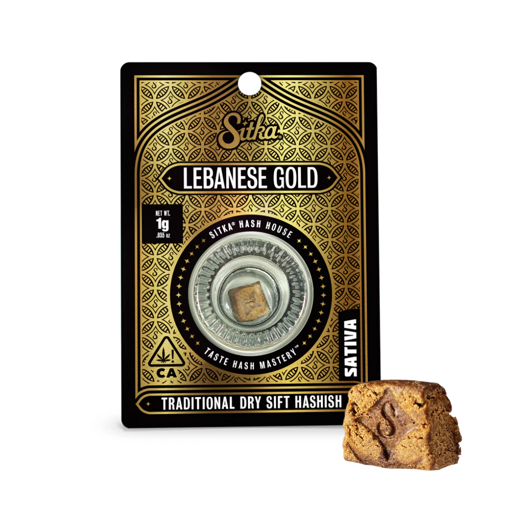 Elevate your smoke sesh with this 1g Lebanese Gold Hash from Sitka, a premium dry-sift hashish crafted from a mix of carefully selected sativa varieties for an uplifting buzz. Crafted using a full-spectrum extraction and patent-pending terpene preservation process, this hash offers a bold, complex taste, a smooth mouthfeel, malleable texture, and an even burn rate for maximum value.