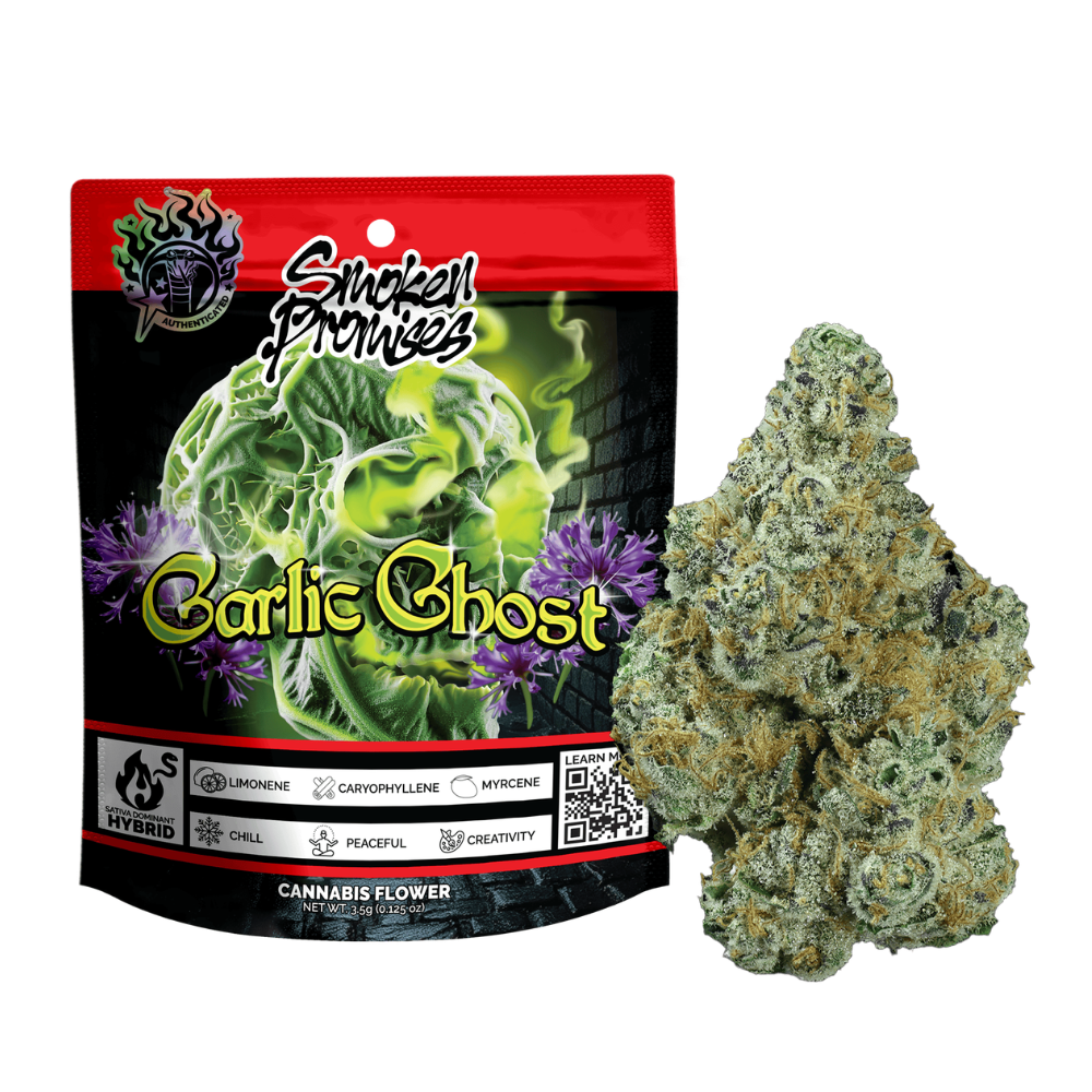 Get ready to conjure up a hauntingly potent experi- ence with Garlic Ghost, a sativa-dominant hybrid that's guaranteed to leave you breathless. This GMO masterpiece is the epitome of dank and gassy, unleashing a pungent aroma that's as intense as it is alluring. With its exceptional lineage, Garlic Ghost delivers a cerebral and uplifting high that's perfect for sparking creativity and focus. But be warned: this strain packs a serious punch, so approach with caution and be prepared to face the ghostly consequences of its unrelenting gas.