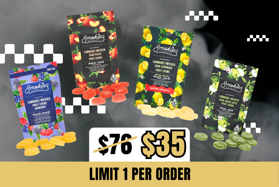 • 100mg THC Sativa Sour Lemonade Fruit Chews (10mg - 10 pack) - Smokiez