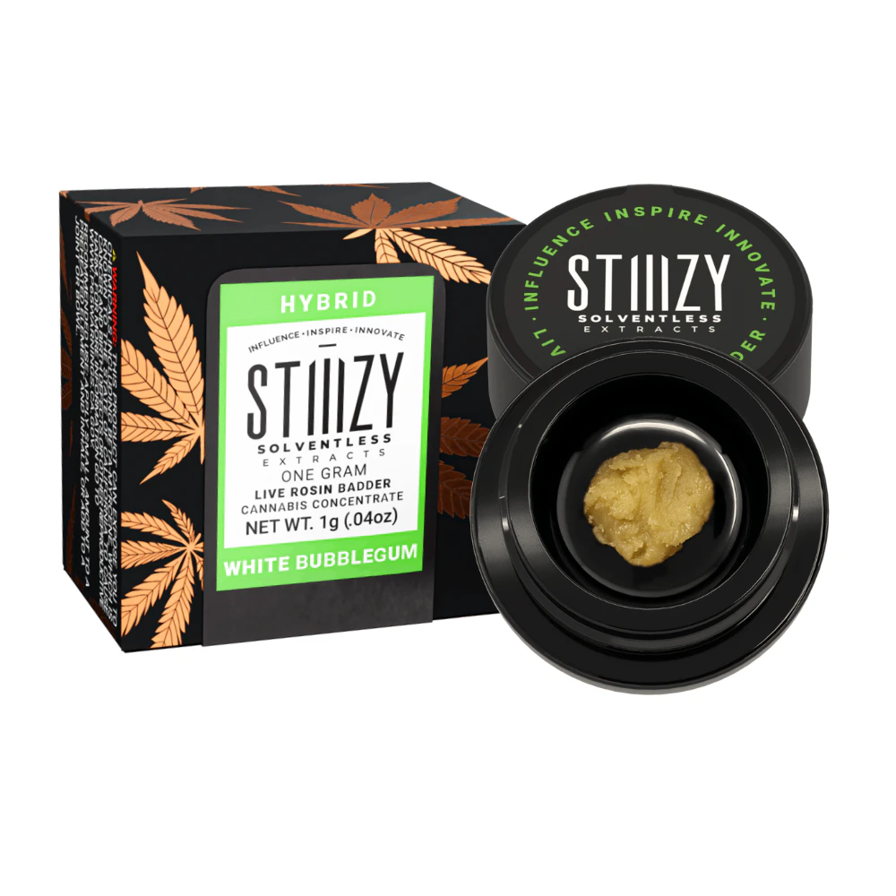 Add some flavor to your creative day with this 1g jar of White Bubblegum Live Rosin Badder from Stiiizy and discover the remarkable harmony of flavors, effects, and aromas. STIIIZY's hand-crafted solventless extracts start with premium flower. Using ice, water, and gentle agitation, we separate the ripe trichomes. These delicate trichomes are then frozen, dried, and carefully sifted, maintaining a cold environment for maximum quality and taste. No chemicals are used in our extraction process.