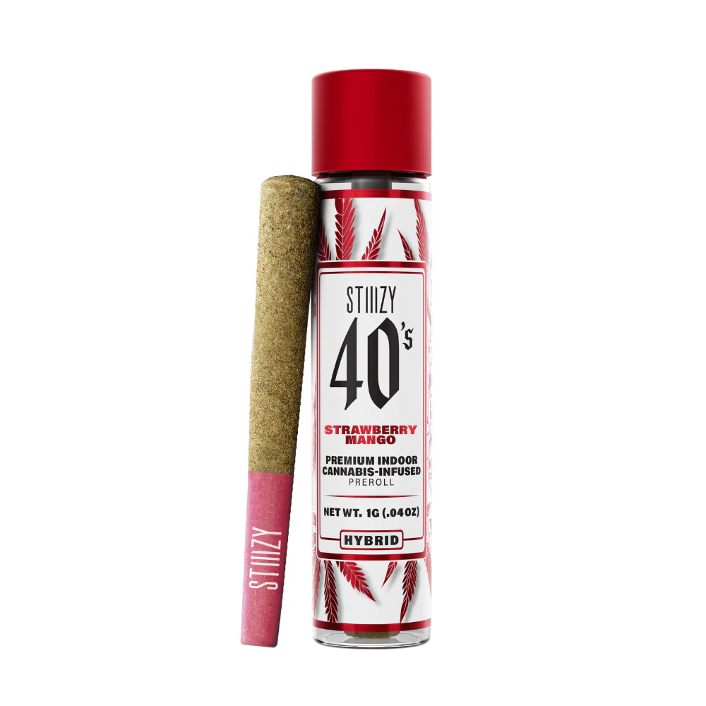 The STIIIZY 40’s Strawberry Mango 1G infused preroll is made with premium flower infused with live resin and finished in a kief-coated cone. Recognized for its flavor-forward, tropical-inspired profile, this preroll showcases the quality and reliability that define the 40’s series, ensuring an elevated infused experience with every draw.