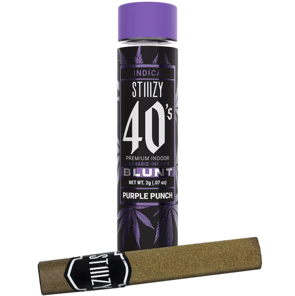 Get your head in the clouds with this live resin-infused blunt containing 2 grams of the cannabis strain Purple Punch from STIIIZY. Elevate your pre-roll game with their 40s, cannabis-infused blunts coated evenly with kief. Using their proprietary live resin infusion methods, theyβve designed every pre-roll to offer 40%+ THC potency with a unique flavor profile. With a smooth inhale and tasteful exhale, each and every Stiiizy 40s is packed with indoor grown flower, specifically made to ensure a potent and long-lasting high.