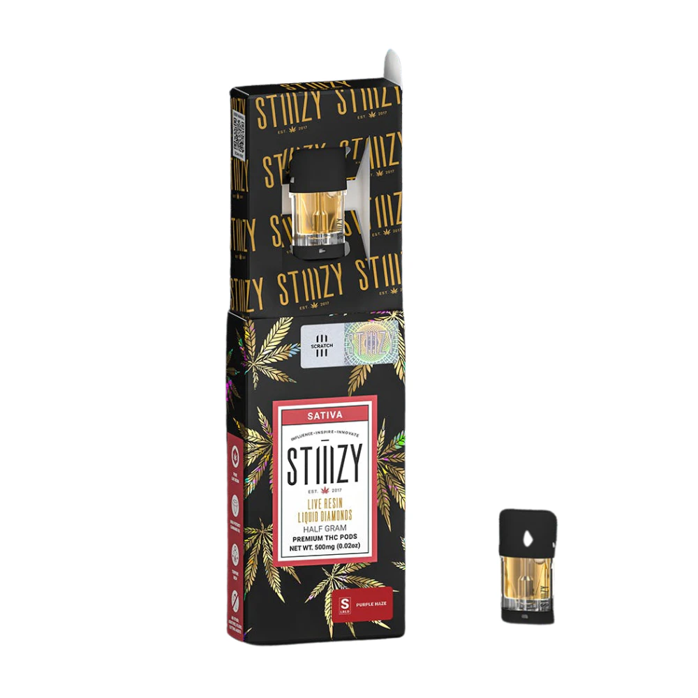 STIIIZY's Live Resin Liquid Diamond Pods are meticulously created by transforming diamonds into a liquid state, ensuring the utmost potency. This liquid is then blended with live resin to preserve the authentic essence of cannabis flavor. Crafted for unparalleled taste and an unmatched experience, each hit seamlessly combines convenience with luxury, elevating your overall enjoyment. Compatible with STIIIZY batteries only.
