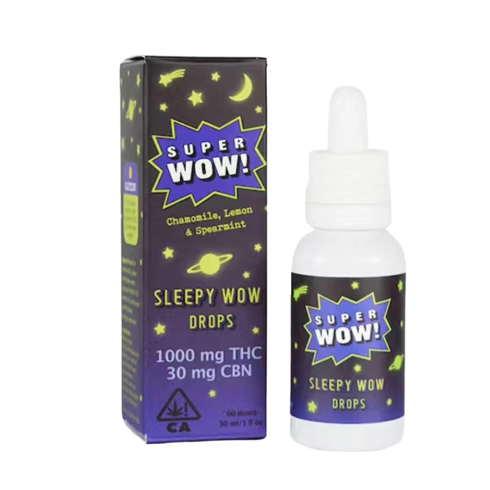 Prepare for a cozy night's sleep with Sleepy Wow drops. The calming flavors of chamomile, spearmint, and lemon, combined with CBN, will have you drifting off to dreamland in no time. It's like your mattress turned into a cloud of comfort. Say "Wow" to a good night's sleep. Super Wow takes pride in being vegan, sugar-free, gluten-free, and cruelty-free. They are a women-owned and operated company based in Northern California.
