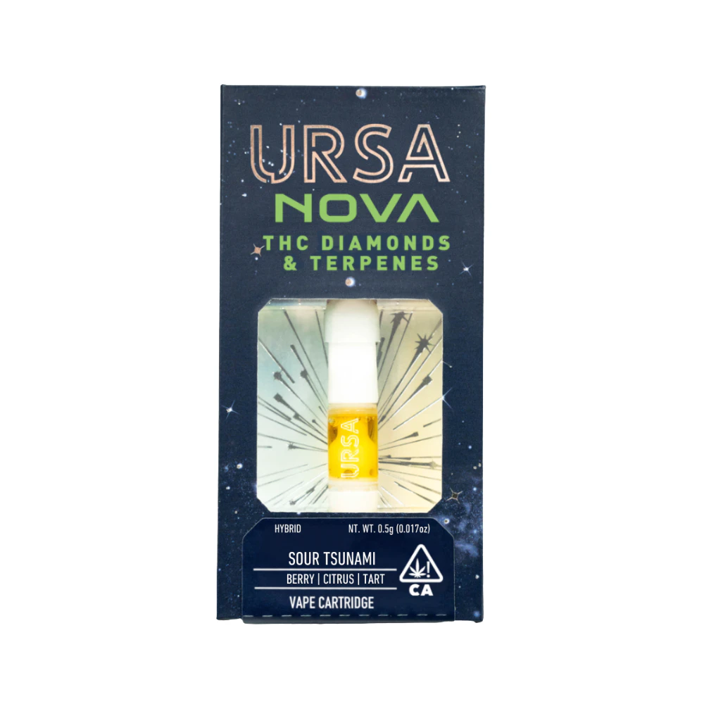 URSA NOVA is liquefied THC Diamonds blended with extra concentrated terpenes called NOVA terps. Known as their NOVA terps using a proprietary extraction method that removes all lipids, leaving only the pure, clear, single-source terpenes. URSA NOVA is made using only full-sun fresh frozen flower from Humboldt.